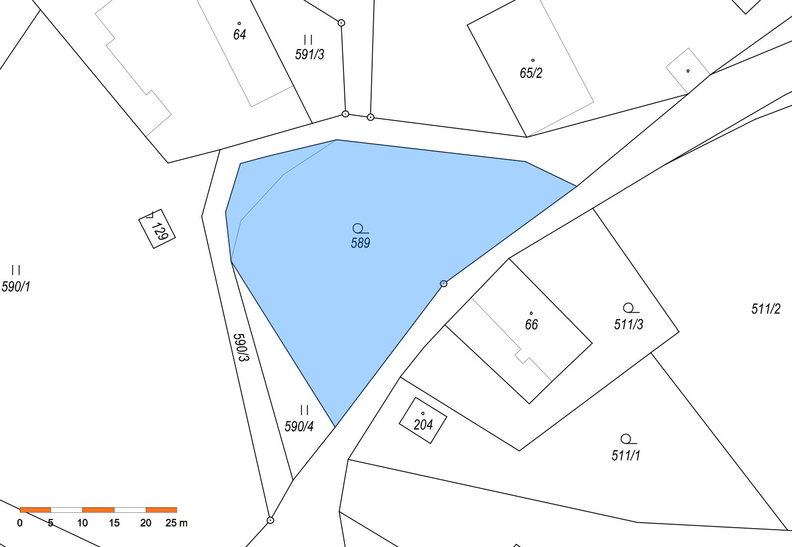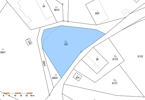 Pozemek je orientačně označen ve fotografii, přesné hranice jsou patrné z přiložené mapy.