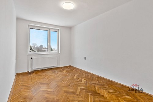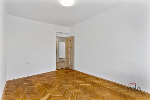 Byt má přehlednou a funkční dispozici. Z prostorné předsíně s praktickou komorou je přístup do všech místností, které jsou neprůchozí. Kuchyně má vstup na lodžii a je vybavena myčkou nádobí, digestoří a kombinovaným sporákem (plyn / elektřina). Dále je zde obývací pokoj, ložnice, dětský pokoj, koupelna s vanou a samostatné WC.