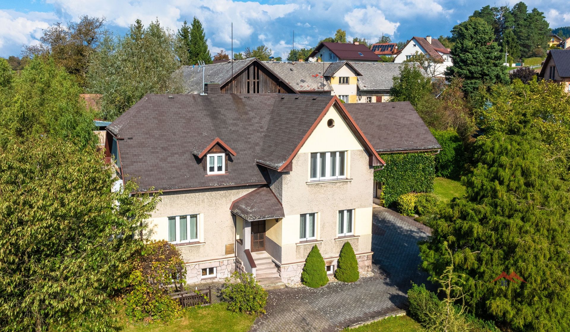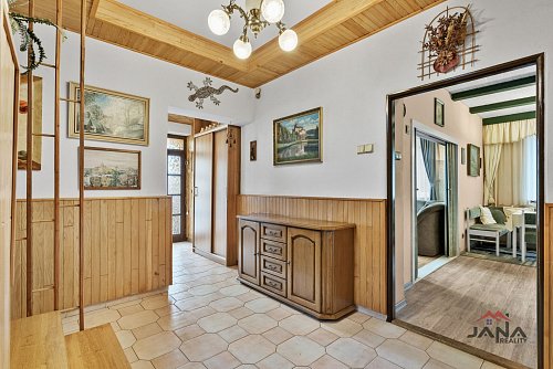 Dům je cihlový, patrový, se dvěma nadzemními a jedním podzemním podlažím. Užitná plocha je přibližně 185 m² a dispozice 5+1 nabízí dostatek prostoru pro pohodlné rodinné bydlení.