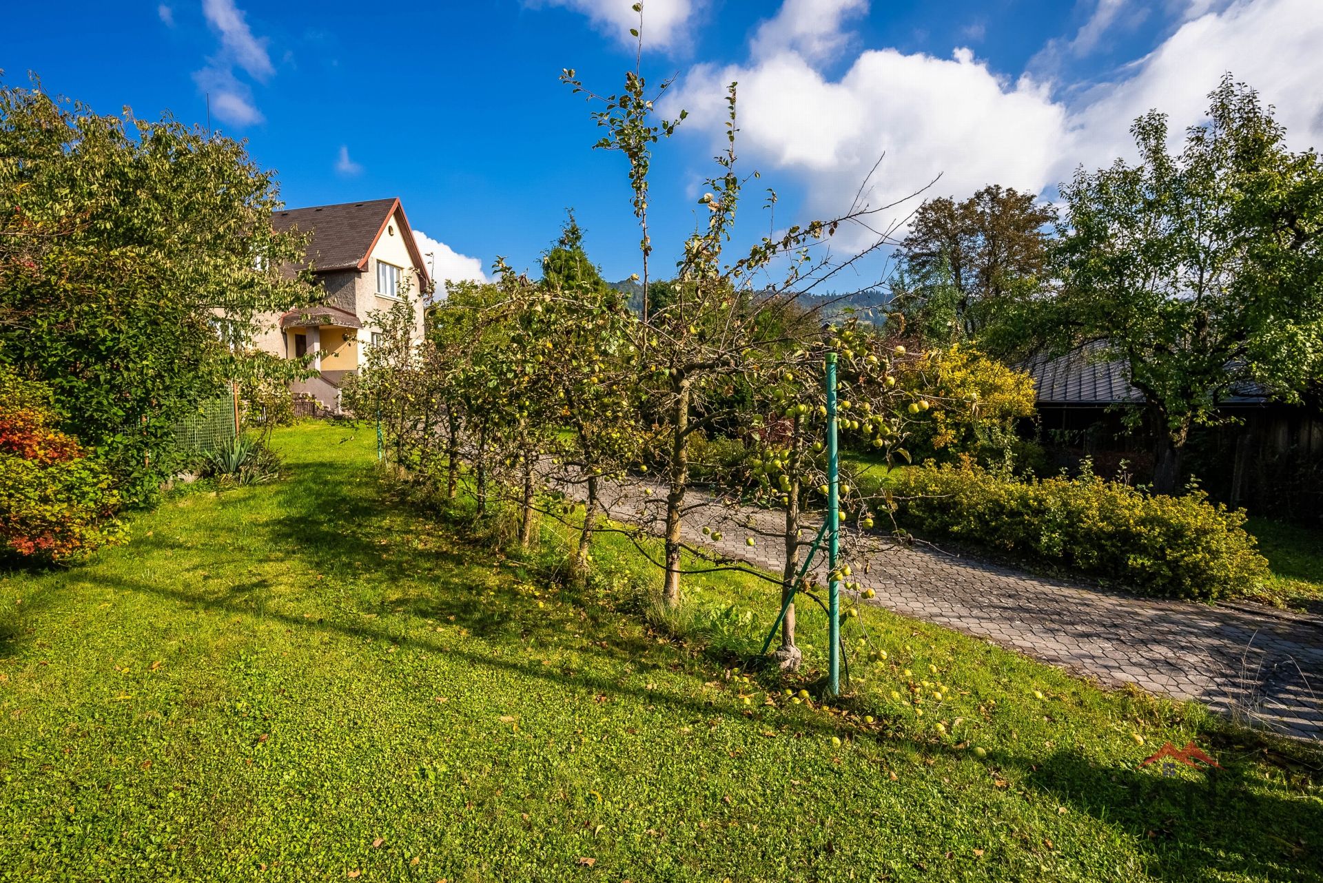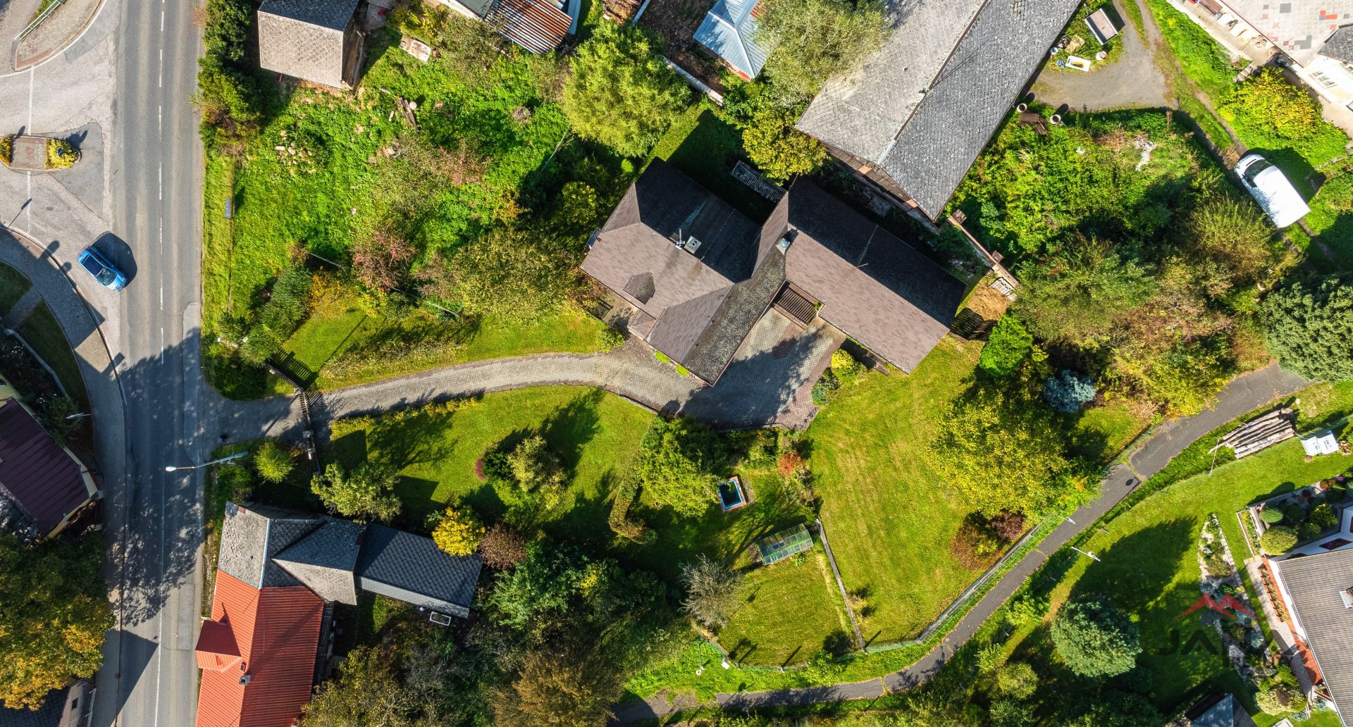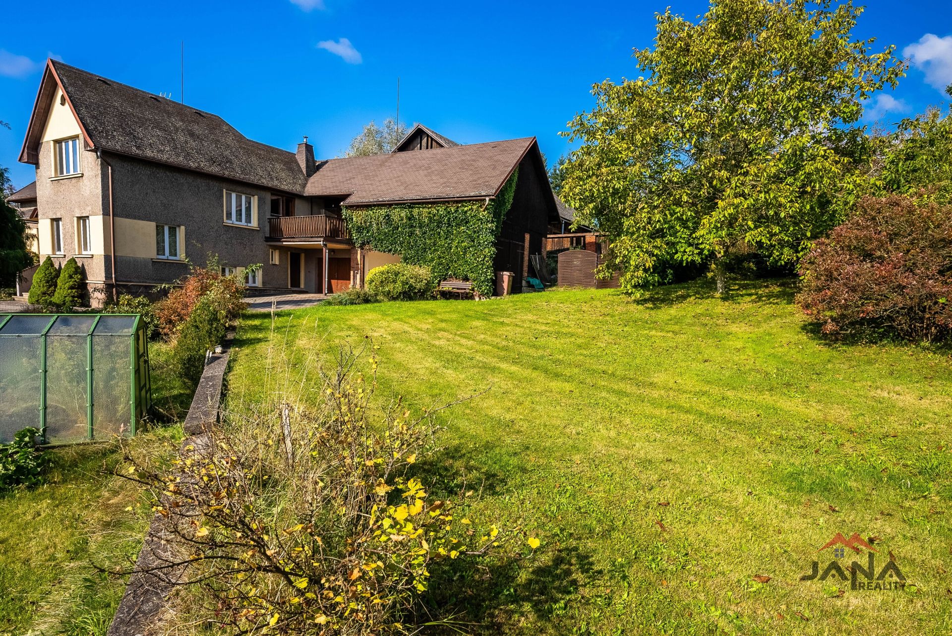 Velkorysý pozemek o výměře 1982 m² nabízí prostornou a rozmanitou zahradu, která poskytuje příjemné zákoutí k relaxaci a posezení. Dům stojí uvnitř zahrady a není přímo u hlavní silnice, což zajišťuje soukromí. Zahrada je osázena různými vzrostlými a ovocnými stromy a keři. Součástí zahrady je bazének, skleník a venkovní posezení.