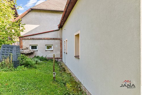 Na dům přímo navazuje stodola, kde je garáž, kryté stání bez vrat a zbylá část původní stodoly – ideální pro dílnu nebo skladování.