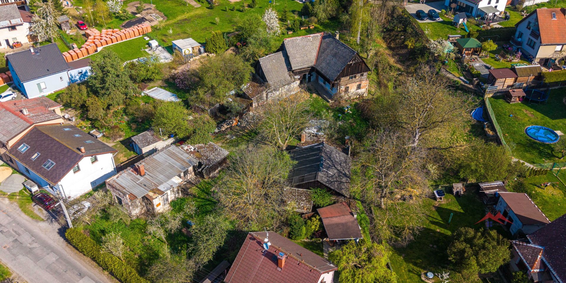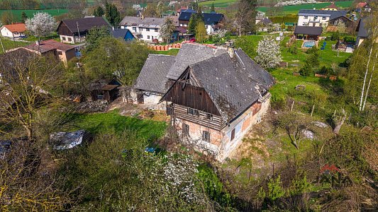 Na pozemku se nachází původní roubená stavba na pískovcových základech. Dle dostupných informací se jedná o jednu z nejstarších staveb v obci s historií přesahující 200 let, v minulosti součást hospodářského stavení. V současnosti je objekt ve špatném technickém stavu a vhodný k demolici.