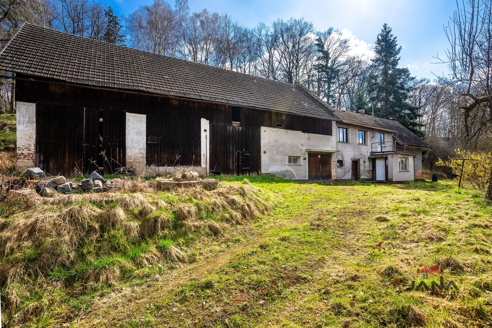 Na obytnou část navazuje velká stodola, která nabízí další využití, například jako sklad, dílna nebo k přestavbě.